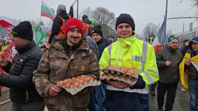 Protest európskych poľnohospodárov proti obchodnej dohode Mercosur pred budovou Európskeho parlamentu v Štrasburgu, ktorého sa zúčastnila aj Slovenská poľnohospodárska a potravinárska komora (SPPK). Štrasburg, Francúzsko, 20. január 2026. Foto: SITA/SPPK