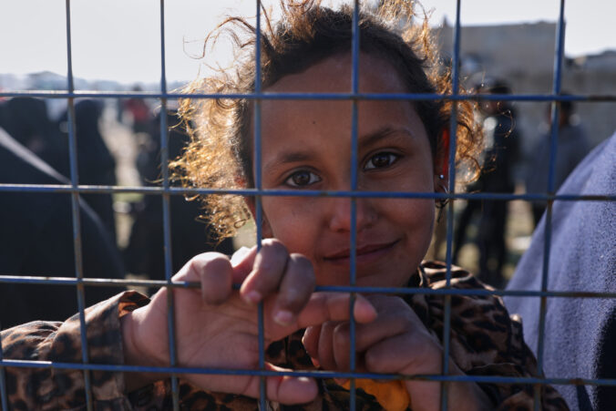Iraqi Bodor Sultan (6), ktorá sa narodila v tábore al-Hol, hľadá obrázok v tábore v provincii Hasaka na severovýchode Sýrie po stiahnutí Sýrskych demokratických síl (SDF). Sýria, 21. januára 2026. Foto: AP Photo/Ghaith Alsayed