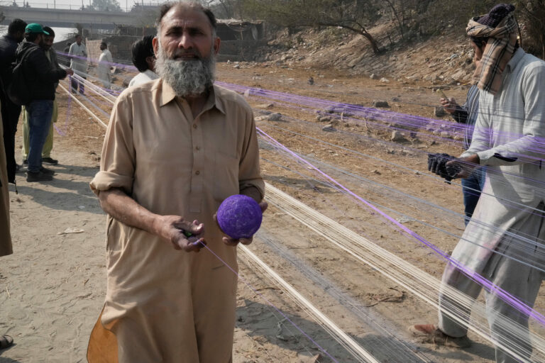 Pracovníci pripravujú niť na púšťanie šarkanov pre nadchádzajúci festival púšťania šarkanov Basant v Lahore. Pakistan, 21. januára 2026. Foto: AP Photo/K.M. Chaudary