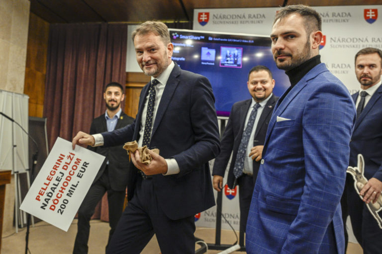 Minister investícií, regionálneho rozvoja a informatizácie SR (MIRRI SR) Richard Raši (vpravo) po schválení programového vyhlásenia vlády (PVV) Roberta Fica v rámci rokovania 3. schôdze Národnej rady SR. Foto: SITA/ Milan Illík.
