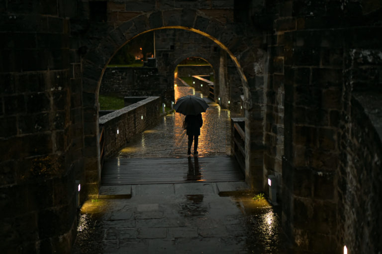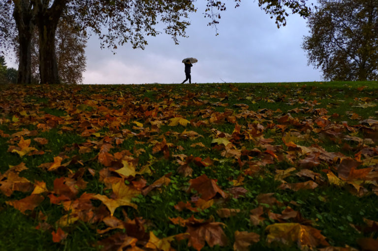Jesenný dážď v Pamplone na severe Španielska. Foto: SITA/AP.