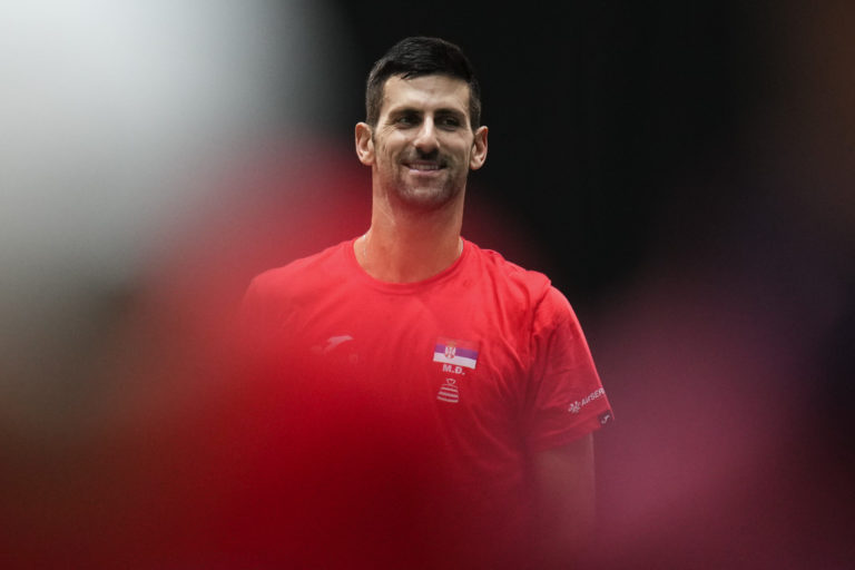 Srbský tenista Novak Djokovič počas tréningu pred finálovým turnajom Davis Cupu v španielske Malage. Foto: SITA/AP.