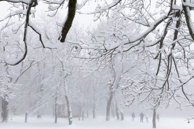 Ľudia kráčajú snehom na turistickom mieste na vrchu Dobogókó neďaleko Pomazu. Maďarsko, 21. novembra 2025. Foto: Zoltan Kocsis/MTI via AP