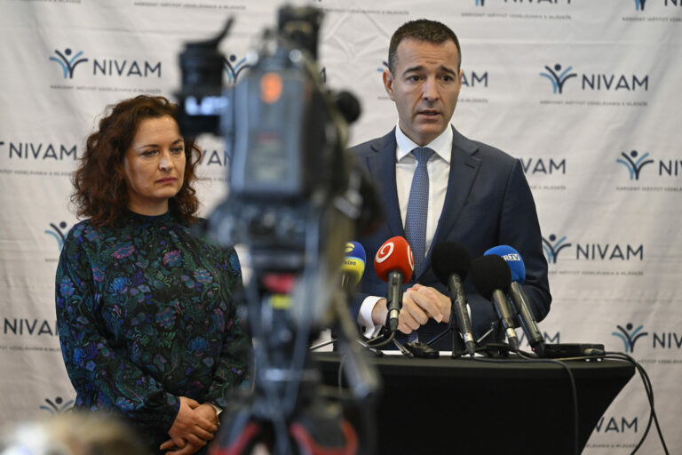 Sprava: Minister školstva, výskumu, vývoja a mládeže Tomáš Drucker a generálna riaditeľka Národného inštitútu vzdelávania a mládeže Romana Kanovská počas tlačovej besedy Ministerstva školstva, výskumu, vývoja a mládeže na