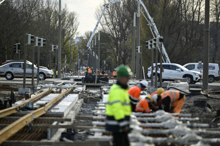 Novovybudovaná električková trať v Petržalke v blízkosti zastávky Jungmannova počas tlačovej besedy ministra dopravy a primátora Bratislavy na tému: Napredovanie vo výstavbe petržalskej električky a schválenie ďalších investícií do projektov dopravnej infraštruktúry v Bratislave. Bratislava, 21. november 2024. Foto: SITA/Milan Illík