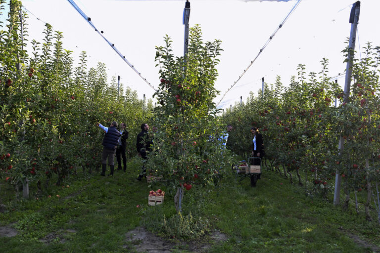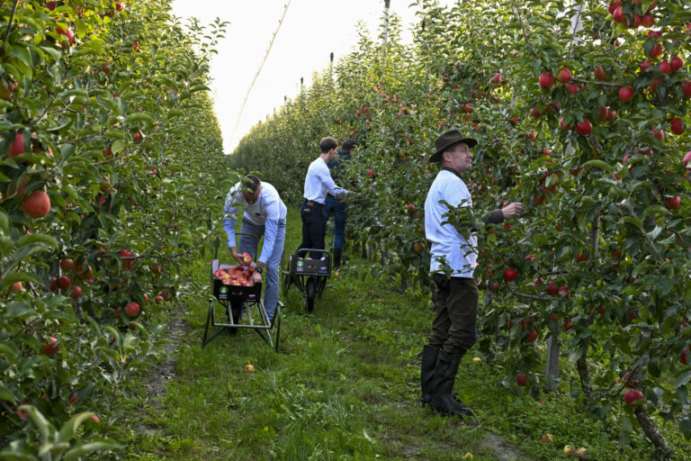 Samozber jabĺk v jabloňovom sade v Dunajskej Lužnej. Dunajská Lužná, 20. september 2024. Foto: SITA/Milan Illík