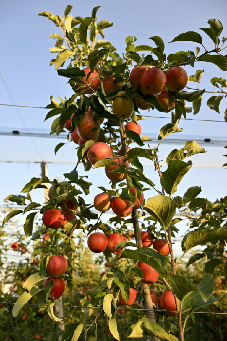 Jabloň s jablkami počas samozberu jabĺk v Dunajskej Lužnej. Dunajská Lužná, 20. september 2024. Foto: SITA/Milan Illík