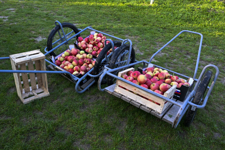 Nazbierané jablká počas samozberu jabĺk v Dunajskej Lužnej. Dunajská Lužná, 20. september 2024. Foto: SITA/Milan Illík