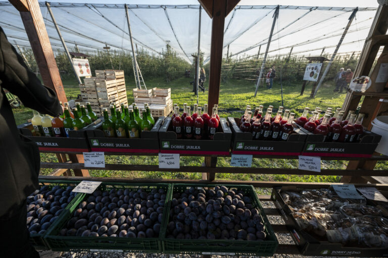 Predaj ovocia a ovocných výrobkov počas samozberu jabĺk v Dunajskej Lužnej. Dunajská Lužná, 20. september 2024. Foto: SITA/Milan Illík