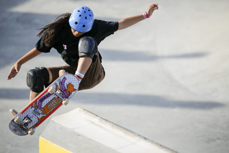 Japonka Mizuho Hasegawaová v akcii počas semifinále žien na majstrovstvách sveta v skateboardingu. Foto: SITA/AP