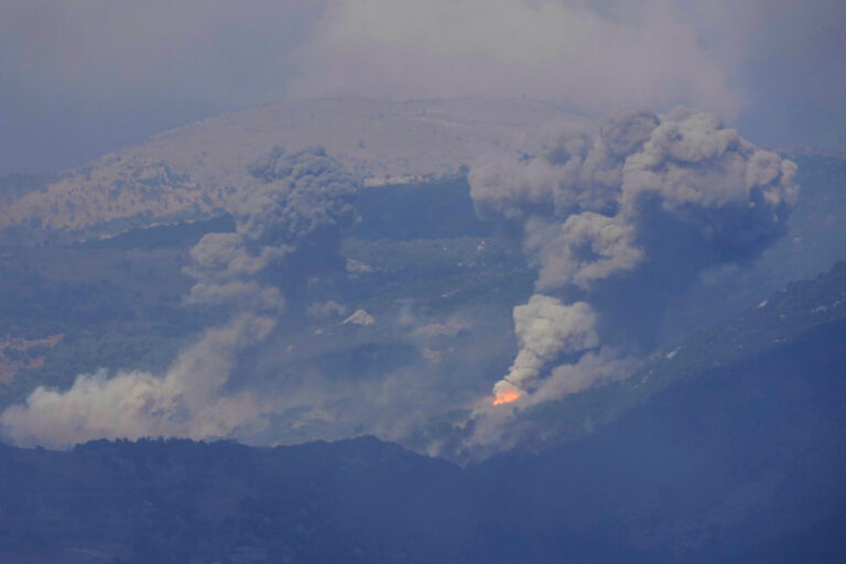 Dym stúpa z izraelských leteckých útokov na pohorie Mahmúdíja v Libanone. Foto: SITA/AP