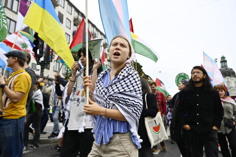 Klimatická aktivistka Greta Thunbergová počas klimatickej demonštrácie v centre Štokholmu. Foto: Anders Wiklund/TT News Agency via AP