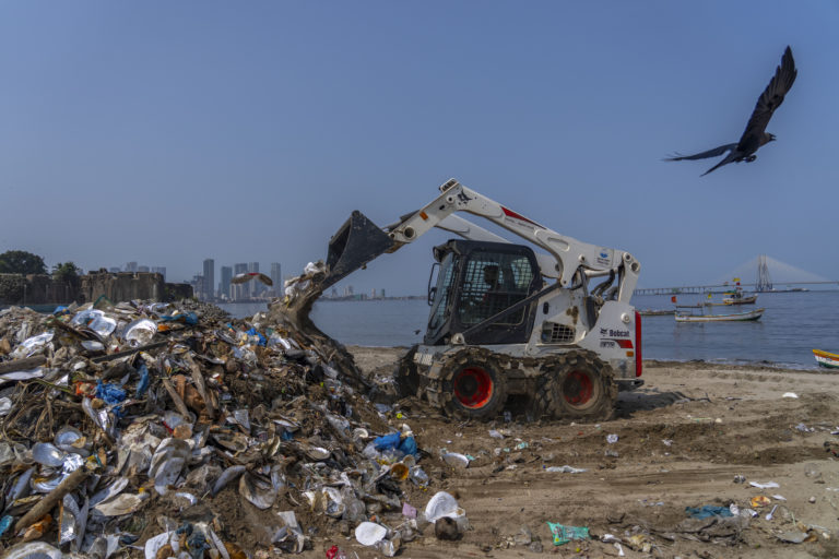 Upratovanie odpadu na indickej pláži Mahim počas Dňa Zeme. Bombaj, 22. apríl 2024. Foto: SITA/AP