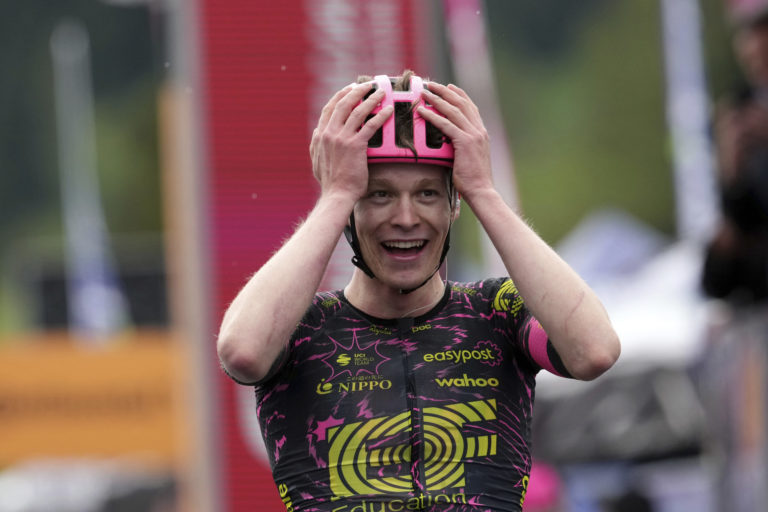 Georg Steinhauser vyhráva 17. úsek talianskych pretekov Giro d'Italia. Streda, 22. máj, 2024. Foto: Gian Mattia D'Alberto/LaPresse via AP