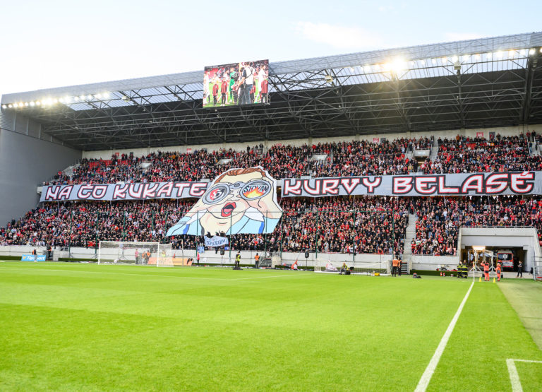 Sektor fanúšikov FC Spartak Trnava pred začiatkom futbalového zápasu 11. kola Niké ligy 2023/2024 medzi FC Spartak Trnava - ŠK Slovan Bratislava. Trnava, 22. október 2023. Foto: SITA/Martin Havran.