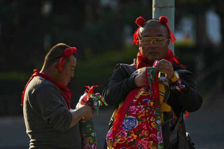Číňania majú na hlave pokrývku Nezhy, postavy z čínskej mytológie. Foto: SITA/AP.