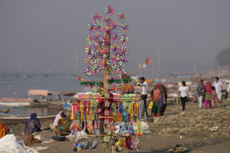 Hinduisti počas rituálov Ashtami na festivale Navratri v Sangame na sútoku riek Gangy, Yamuny a mýtického Saraswati. Foto: SITA/AP.
