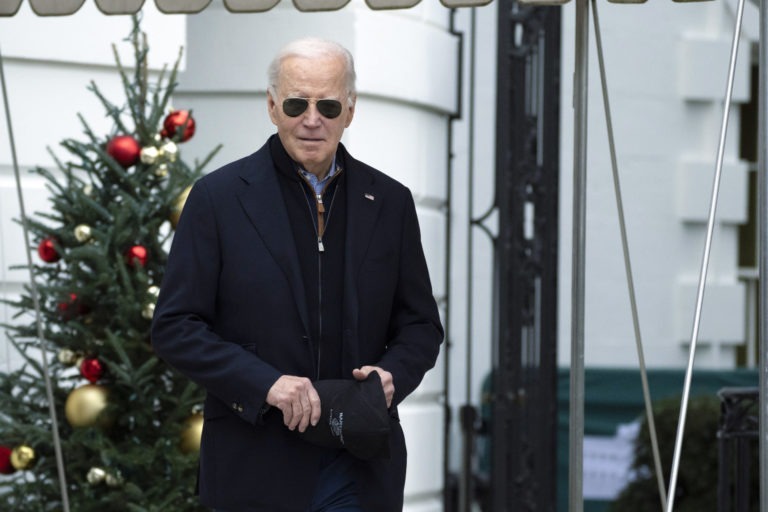 President Joe Biden walks towards the members of the media as he leaves the White House to spend the Christmas holiday with his family at Camp David presidential retreat, near Thurmont. Foto: SITA/AP.