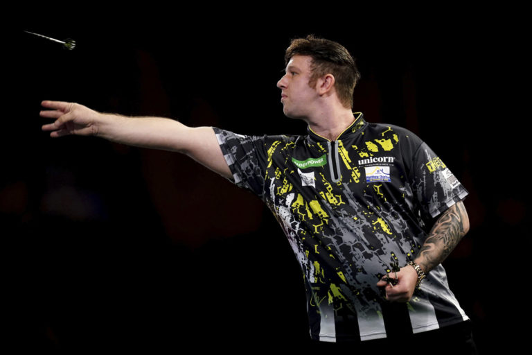 England's Callan Rydz, in action, during his match against Germany's Ricardo Pietreczko, on day nine of the World Darts Championship at Alexandra Palace, London. Foto: John Walton/PA via AP.
