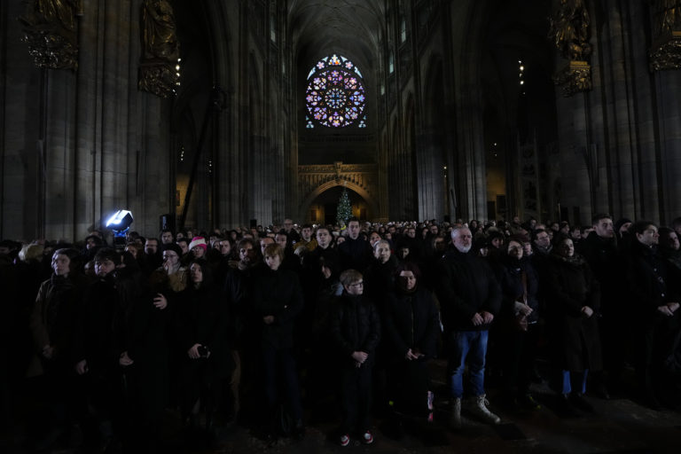 Memorial service for the victims of Philosophical Faculty of Charles University shooting is held in then St. Vitus Cathedral in Prague, Czech Republic. Czech police are investigating why a student went on a dayslong violent rampage culminating in a shooting at the university he attended in Prague that left 14 dead and dozens wounded. Foto: SITA/AP.