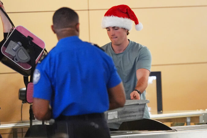 Josh McClure (vpravo) prechádza cez TSA na medzinárodnom letisku Dallas Fort Worth. Texas, 22. decembra 2025 v Grapevine. Foto: AP Photo/LM Otero