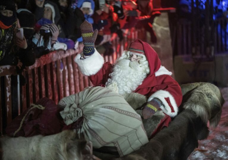 Santa Claus odchádza zo Santovej dedinky vo fínskom Rovaniemi na svoju dlhú vianočnú cestu. 23. december 2024. Foto: Jouni Porsanger/Lehtikuva via AP