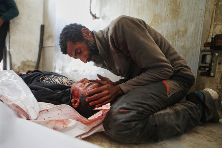 Yusuf Zawara smúti nad telom svojho syna, 15-ročného Mohammada Zawaru, ktorý bol podľa zdravotníckych predstaviteľov zabitý pri izraelskom útoku v nemocnici Shifa v meste Gaza. Palestína, 24. januára 2026. Foto: AP Photo/Yousef Al Zanoun
