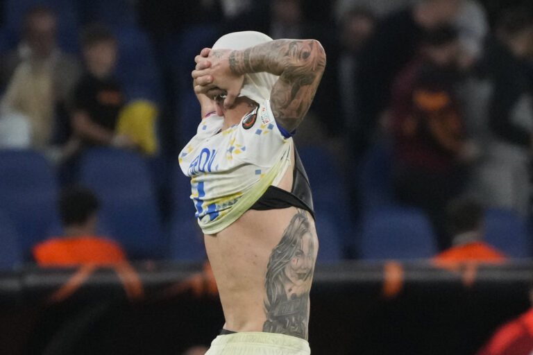 Hráč Dynama Kyjev Denys Popov po zápase Európskej ligy s AS Rím, ktorý ukrajinský tím prehral 0:1. Rím, 24. október 2024. Foto: SITA/AP