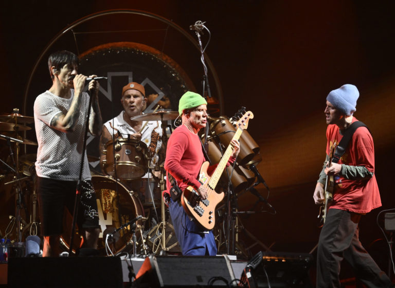 Zľava: Anthony Kiedis, Chad Smith, Flea a John Frusciante z Red Hot Chili Peppers počas vystúpenia na Global Citizen Festival v Central Parku v New Yorku. Foto: Evan Agostini/Invision/AP.