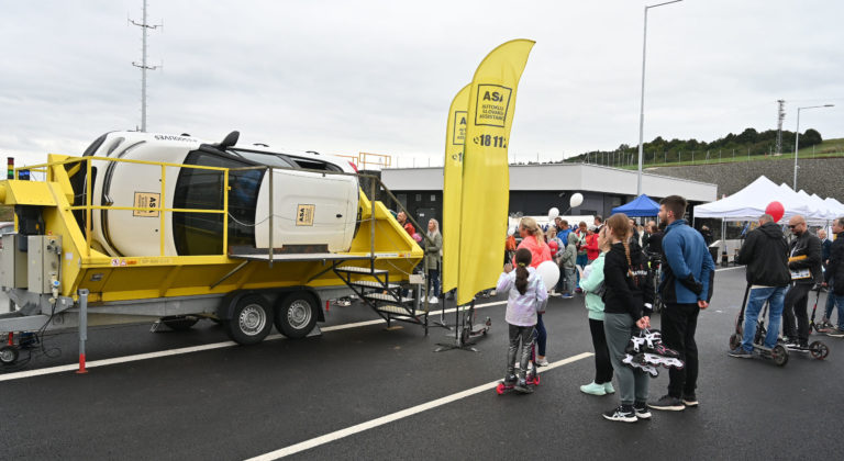 Simulátor prevrátenia vozidla si verejnosť vyskúšala počas dňa otvoreného tunela Bikoš. Foto: SITA/Viktor Zamborský.