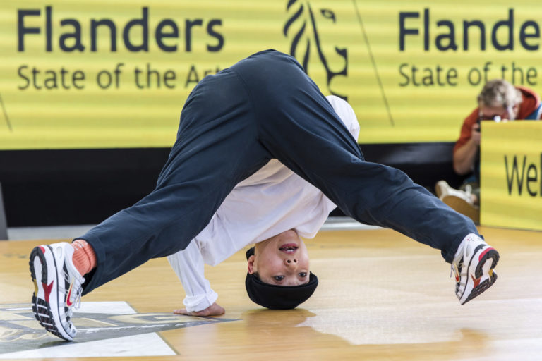 Ami Yuasa z Japonska počas majstrovstiev sveta v breakdance v belgickom Leuvene. Foto: SITA/AP.