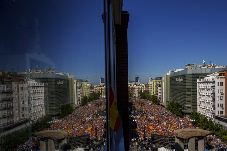 Priaznivci Ľudovej strany počas zhromaždenia v Madride. Foto: SITA/AP.