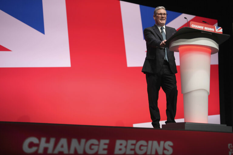 Britský premiér Keir Starmer počas svojho príhovoru na konferencii Labouristickej strany. Liverpool, 24. september 2024. Foto: SITA/AP