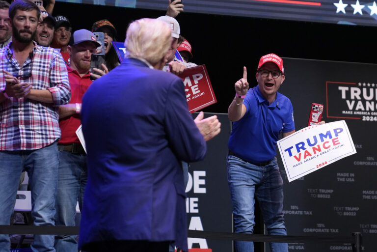Republikánsky kandidát na prezidenta USA, bývalý prezident Donald Trump a jeho podporovatelia v Johnny Mercer Theatre Civic Center v americkom štáte Georgia. Savannah, 24. september 2024. Foto: SITA/AP
