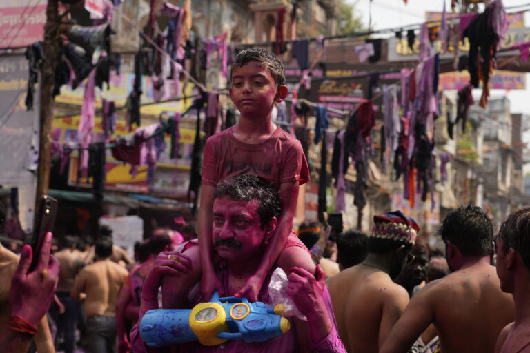 Malý chlapec počas osláv hinduistického sviatku farieb Holi. Foto: SITA/AP