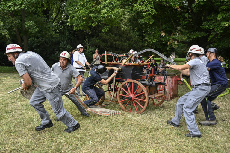 Atmosféra počas XXXIV. ročníka medzinárodnej súťaže s historickou hasičskou technikou v bratislavskej mestskej časti Rusovce. Foto: SITA/Milan Illík.