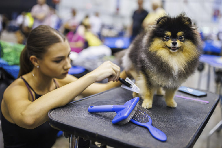 Svetová výstava psov Ženeva, na ktorej Účastníci z 80 krajín predstavujú viac ako 21 500 psov z 350 plemien. Foto: Valentin Flauraud/Keystone via AP.