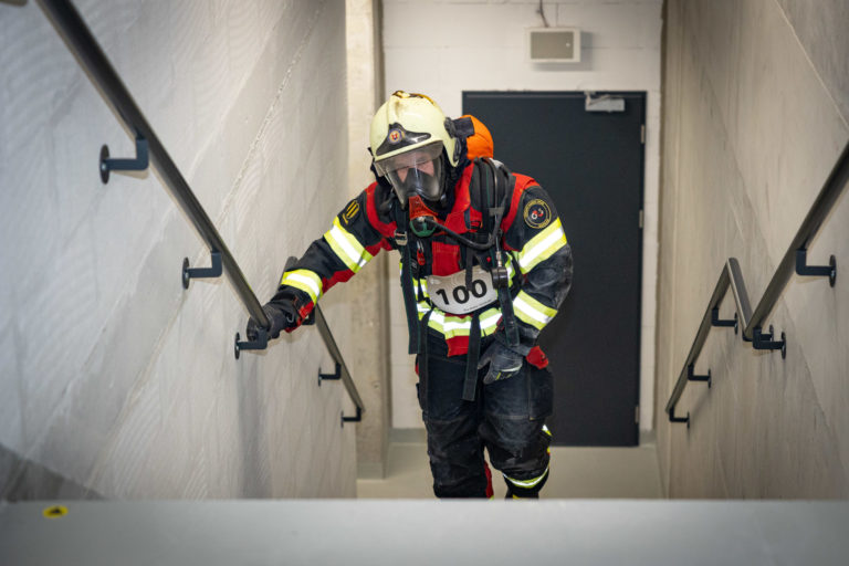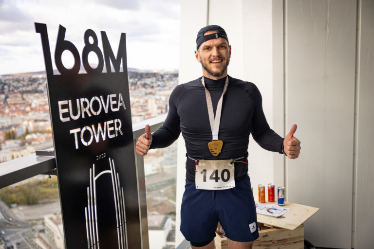 Súťažiaci počas 1. ročníka behu na najvyššiu budovu Slovenska Eurovea Tower Run. Bratislava, 25. november 2023. Foto: SITA/Jana Birošová