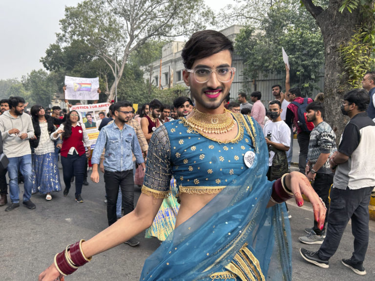 Účastník Dillí Queer Pride Parade pózuje na fotografii počas pochodu v Naí Dillí v Indii, ktorý sa každoročne koná v čase, keď najvyšší indický súd odmietol zlegalizovať sobáše osobám rovnakého pohlavia. Foto: SITA/AP.