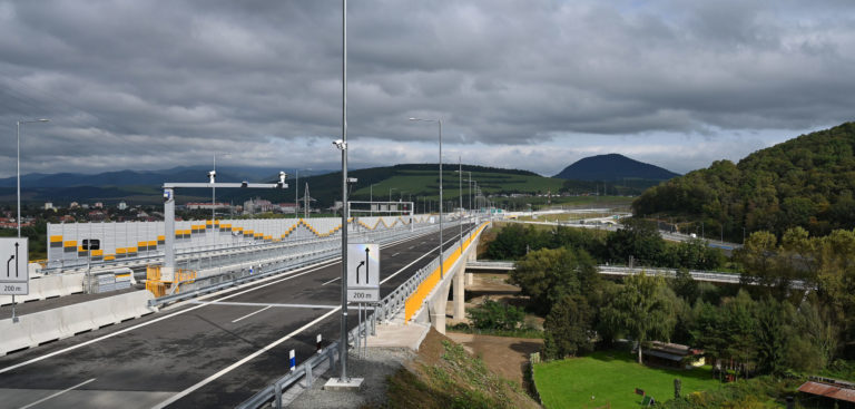 Pohľad na nový úsek rýchlostnej cesty R4 Prešov- severný obchvat I. etapa, pod Šarišským hradom, ktorý dnes slávnostné otvorili. Prešov 25. september 2023. Foto: SITA/Viktor Zamborský