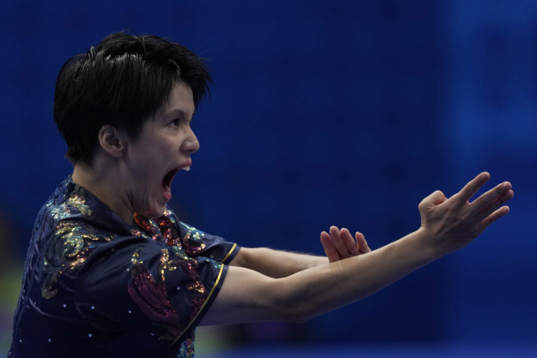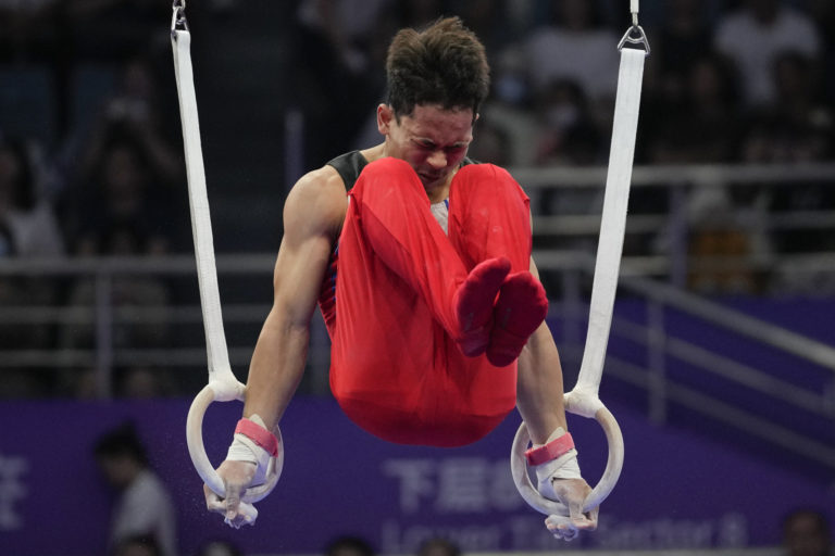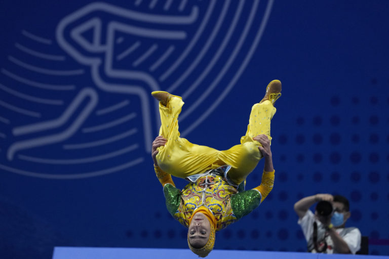 Baobenmad z Thajska súťaží na kruhoch počas ázijských hier v Hangzhou, Čína, utorok 26. septembra 2023. Foto: SITA/AP