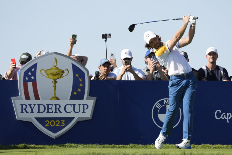 Tommy Fleetwood počas tréningového kola pred Ryder Cupom v Taliansku, utorok 26. septembra 2023. Foto: SITA/AP