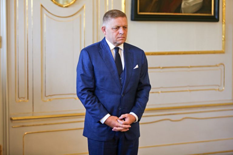 Predseda vlády SR Robert Fico počas prijatia premiéra SR prezidentom SR v Prezidentskom paláci. Bratislava, 27. august 2024. Foto: SITA/Tomáš Susko