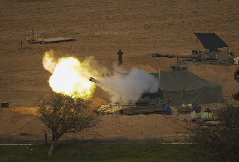 Izraelská mobilná delostrelecká jednotka vystrelila granát z južného Izraela smerom k Pásmu Gazy. Foto: SITA/AP.
