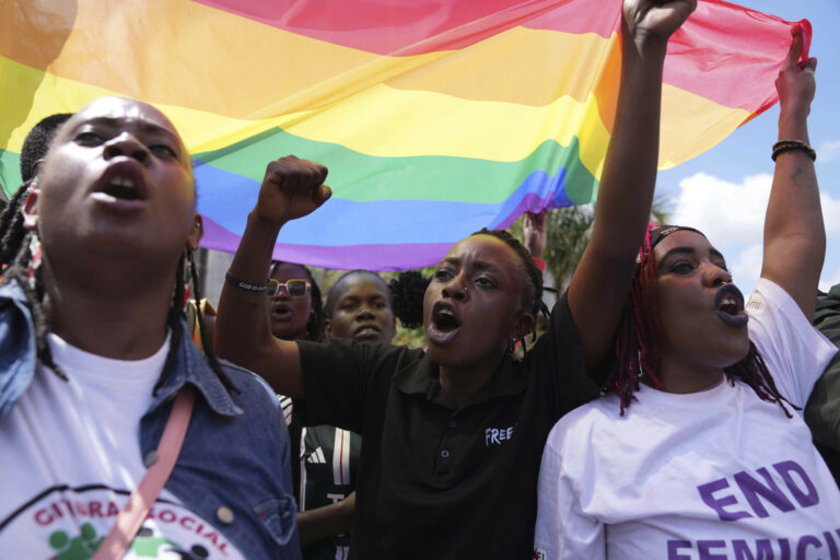 Ženy a feministky v Keni pochodujú proti rastúcemu počtu prípadov vrážd žien v centre Nairobi. Foto: SITA/AP