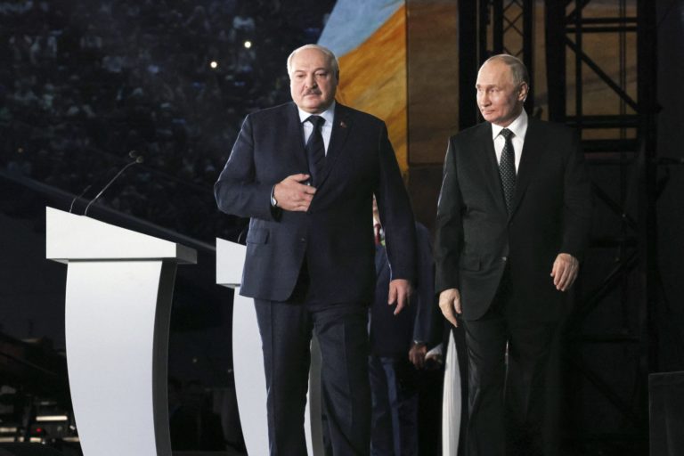 Ruský prezident Vladimir Putin (vpravo) a bieloruský prezident Alexander na koncerte pri príležitosti 80. výročia bitky, ktorá ukončila obliehanie Leningradu. Foto: (Gavriil Grigorov, Sputnik, Kremlin Pool Photo via AP