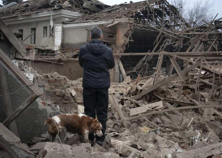 Budova po nočnom ruskom raketovom útoku v Slovjansku. Foto: archívne, SITA/AP