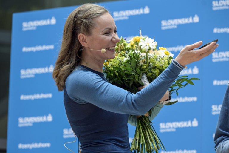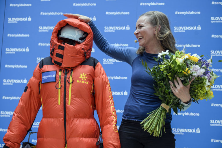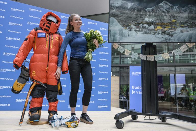 Slovenská horolezkyňa a vedkyňa v oblasti imunológie Lucia Janičová počas mediálnych raňajok s prvou Slovenkou na Evereste Luciou Janičovou v átriu Slovenskej sporiteľne v Bratislave. Bratislava, 27. máj 2024. Foto: SITA/Milan Illík.
