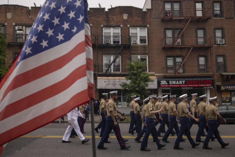 Americkí námorníci a mariňáci pochodujú počas 157. ročníka Brooklyn Memorial Day Parade v NY. Foto: SITA/AP