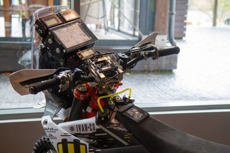 Detail motocykla slovenského motocyklového pretekára Štefana Svitka počas tlačovej konferencie Slovnaft Rally Teamu o prípravách na 46. ročník Rely Dakar 2024 v Saudskej Arábii. Foto: SITA/Ľudovít Vaniher.